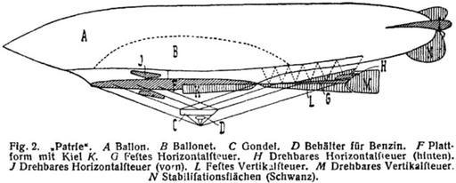 | Keywords: L-Luftschiff3.png Lueger Skizze der französische halbstarres Luftschiff Patrie Legend Fig 2 Patrie A Ballon B Ballonet C Gondel D Behälter für Benzin F Plattform mit Kiel K G Festes Horizontalsteuer H Drehbares Horizontalsteuer hinten J Drehbares Horizontalsteuer vorn L Festes Vertikalsteuer M Drehbares Vertikalsteuer N Stabilationsflächen Schwanz Diagram of the French semirigid military airship Patrie which broke free and was lost in 1907-11-30 Translated caption Fig 2 Patrie A Balloon B Ballonet C Gondola D Gasoline tank F Platform with keel K G Fixed horizontal fin H Turnable horizontal fin aft J Turnable horizontal fin fore L Fixed vertical fin M Rudder N Stabiliser tail Notes http //memory loc gov/cgi-bin/query/r ammem/magbell field 28DOCID+ lit 28magbell37500101 29 29 Speech by Alexander Graham Bell March 4 1907 PROC WASH ACAD SCI VOL VIII pp 407--448 PLATES IX--XX MARCH 4 1907 http //memory loc gov/mss/magbell/375/37500101/0053i tif PROC WASH ACAD SCI VOL VIII Plate XIX 1907-03-04 'The French Military Dirigible Patrie in flight The latest French airship La Patrie is 33¾ feet in diameter by 196 feet long and has a capacity of 111 195 cubic feet Driven by a 70-horsepower motor and two propellers this dirigible has recently made about 30 miles an hour Its lifting capacity is 2 777 pounds Illustration from the Scientific American http //query nytimes com/gst/abstract html res 9507E2D6103EE033A25752C0A9649D946697D6CF BIG FRENCH AIRSHIP LOST ; The Patrie Finest In the Country Runs Away New York Times 1907-12-01 http //query nytimes com/mem/archive-free/pdf res 9507E2D6103EE033A25752C0A9649D946697D6CF full article PDF Lueger Otto Lexikon der gesamten Technik und ihrer Hilfswissenschaften 1920 Lueger 1904-1920 public domain Lueger/Transport Airships in art 1920s diagrams Military ballooning Lebaudy Patrie |