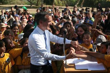 | Keywords: every kid in a park everykidinapark findyourpark juan bautista de anza national historic trail juanbautistadeanzanationalhistorictrail santa monica mountains national recreation area santamonicamountainsnationalrecreationarea los angeles losangeles san fernando valley sanfernandovalley anthony c. beilenson park anthonycbeilensonpark department of interior departmentofinterior outdoor Mayor Eric Garcetti, County Supervisor Sheila Kuehl, and members of the City Council helped kick of the L.A. launch of the Every Kid in a Park program on October 15, 2015 near Santa Monica Mountains National Recreation Area. Nearly 500 local 4th-graders participated in educational activities and were rewarded with a Junior Ranger badge and a free annual pass to all federal lands. Photo credit: National Park Service. Mayor Eric Garcetti, County Supervisor Sheila Kuehl, and members of the City Council helped kick of the L.A. launch of the Every Kid in a Park program on October 15, 2015 near Santa Monica Mountains National Recreation Area. Nearly 500 local 4th-graders participated in educational activities and were rewarded with a Junior Ranger badge and a free annual pass to all federal lands. Photo credit: National Park Service. |