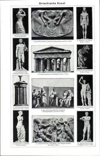 | Keywords: LA2-Blitz-0162.jpg Kretish-mykenische Bronzestatuette Sog Thronlehne Ludovisi Apollon von Tenea Doryphoros des Polyklet Poseidontempel zu Paestum Nike von Samothrake Lysikrates denkmal Sog Aldobrandinische Hochzeit Hermes des Praxiteles Aphrodite von Melos Gigantomachie ; Pergamonaltar Apoxyomenos des Lysippos Extract image Ancient Greek sculptures book Meyers Blitz-Lexikon 161 163 Meyers Blitz-Lexikon 162 Ludovisi Throne Nike of Samothrace LA2-Blitz Historical images of the choragic monument of Lysicrates Athens 1880s |
