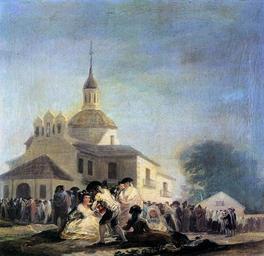 | Keywords: La ermita de San Isidro.jpg en The hermitage of Saint Isidor Pilgrimage to the Church of San Isidor Oil on canvas 42 x 44 cm Museo del Prado Madrid it Eremo di san Isidoro Pellegrinaggio alla Chiesa di San Isidoro Olio 42 x 44 cm Museo del Prado Madrid pl Pustelnia św Izydora Pielgrzymka do kościoła św Izydora Obraz olejny 42 x 44 cm Muzeum del Prado Madryt http //www museodelprado es/es/pagina-principal/coleccion/galeria-on-line/galeria-on-line/zoom/1/obra/la-reina-maria-luisa-a-caballo/oimg/0/ 1788 Creator Francisco de Goya y Lucientes PD-Art PD-old-100 Paintings by Goya in the Prado Museum Rococo paintings of structures Classicist paintings Cartones para tapices Romantic paintings of churches Hermitage of San Isidro Madrid |