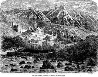 | Keywords: La fortresse d'Ananour. Dessin de Blanchard. Le Tour du monde (Paris. 1860-1914).jpg fr La fortresse d'Ananour Le Tour du monde nouveau journal des voyages / publié sous la direction de M Édouard Charton et illustré par nos plus célèbres artistes ark /12148/bpt6k34379n/f124 image 1861 P B Blanchard 100px Ananuri in art Rivers of Georgia in art Images from Le Tour du monde PD-Art-100 | ||||