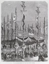 | Keywords: La grande porte en face du pont d'Iéna.jpg Entrance gate of the 1867 Paris World Fair at the Pont d'Iéna The 1867 Fair was the second one to take place under the Second Empire and Napoléon III was very involved in the project The Iéna bridge behind the entrance gate on this picture had been built under Napoléon I in 1807 and was named after one of his military victories It was therefore a powerful symbol for the Second Empire The bridge is located between the Champ-de-Mars where now stands the Eiffel Tower and where the main parts of the 1867 World Fair were located and the right bank of the Seine river 1868 engraving 23 4 x 18 cm Institution Brown University Library object history exhibition history credit line Grand album de l'Exposition Universelle 1867 150 dessins par les premiers artistes de la France et de l'étranger Paris Michel Lévy Frères 1868 accession number 1254169180920494 PD-old Engravings of Paris Images of Paris from the Brown University Library Exposition Universelle 1867 Gates in Paris 1868 engravings |