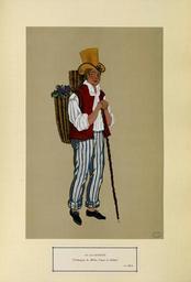 | Keywords: La Guyenne - Vendengeur du Médoc, d'après de Gallard - XIXe siècle (n° 112) - Fonds Ancely - B315556101 A GARDILANNE 020.jpg Fac-similé des deux-cents gouaches en couleur exposées en Janvier 1928 chez Bernheim jeune à Paris Les originaux édités vont alors au Métropolitain Museum de New-York La série comporte 25 fascicules de 240 francs pièce Les 27 planches rassemblées ici sont les suivantes pl 34 35 36 37 38 39 40 86 87 88 89 90 91 106 107 108 109 110 111 112 113 114 115 122 123 124 125 Pièces jointes prospectus du fac-similé des deux-cents gouaches en couleur exposées en Janvier 1928 chez Bernheim-jeune galerie à Paris et catalogue de cette exposition de 1928 Ancely René 1876 - 1966 Possesseur fre public domain domaine public B315556101_A_GARDILANNE_1_020 jpg image/jpeg 27 pl en coul ; 37 5 cm Moffat Elisabeth Whitney Illustrateur http //numerique bibliotheque toulouse fr/collect/general/index/assoc//ark /74899/B315556101_A_GARDILANNE_020 dir/B315556101_A_GARDILANNE_1_020 jpg Bibliothèque municipale de Toulouse A-GARDILANNE 20 Creator Gratiane de Gardillane http //catalogues toulouse fr/web2/tramp2 exe/do_keyword_search/log_in setting_key BMT1 servers 1home query p000477 vignette http //numerique bibliotheque toulouse fr/collect/general/index/assoc//ark /74899/B315556101_A_GARDILANNE_020 dir/B315556101_A_GARDILANNE_1_020_thumb jpeg by 1928 La Guyenne - Vendengeur du Médoc d'après de Gallard - XIXe siècle n° 112 B315556101_A_GARDILANNE_020 watercolor - paint - colors Hats in art Vests Standing people Hiking equipment Médoc Shoes in art Gratiane de Gardilanne National costumes in art Men in art Grapes in art French national costumes Trousers Agricultural tools |