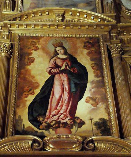 | Keywords: La Inmaculada Concepción, en el retablo de la capilla de San Pedro (Catedral de Sevilla).jpg Esta obra que está colocada en el centro del retablo de la capilla de San Pedro de la catedral de Sevilla España fue pintada hacia el año 1630 por el célebre pintor Francisco de Zurbaran y según algunos autores es una de las más bellas Inmaculadas que pintó jamás este artista c 1630 oil canvas Size cm Catedral de Santa María de la Sede de Sevilla Retablo de la capilla de San Pedro de la catedral de Sevilla cite book Luis Martinez Montiel and Alfredo J Morales La catedral de Sevilla 1999 Scala Publishers and Aldeasa S A 857592042 object history exhibition history credit line accession number http //www archisevilla org/imagenes/recursos/4/44 jpg PD-old-100 Retablo de la capilla de San Pedro Catedral de Sevilla Paintings of Immaculata by Zurbaran Uploaded with UploadWizard |