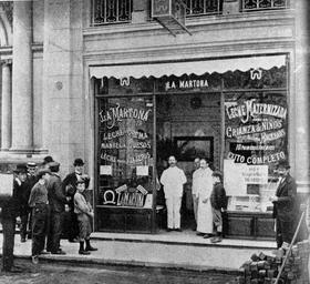 | Keywords: La Martona empresa láctea local.jpg en Dairy products store by La Martona located on San Martín 115 just opposite Banco Provincia de Buenos Aires Argentina es Local de venta de leche La Martona en calle San Martín 115 justo junto al Banco Provincia de Buenos Aires en Buenos Aires Argentina Archivo General de la Nación Argentina Inventario 346157 1902 author PD-AR-Anonymous PD-anon-1923 La Martona Buenos Aires in the 1910s Milk bars | ||||