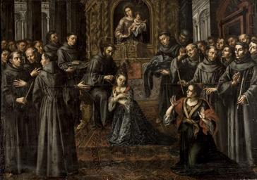 | Keywords: La profesión de Santa Clara de Asís (Ayuntamiento de Sevilla).jpg La obra representa a Santa Clara de Asís profesando sus votos en presencia de San Francisco de Asís lo que tuvo lugar en la capilla de la Porciúncula de Asís en la festividad del Domingo de Ramos de 1212 Y conviene señalar que esta obra formó parte de un conjunto de lienzos que Juan Ruiz Soriano ejecutó para el desaparecido convento de San Francisco de Sevilla que fue demolido en 1841 1734 oil on canvas Size cm Institution Ayuntamiento de Sevilla Institution Casa consistorial de Sevilla http //patrimoniumhispalense com/es/espacio/casa-consistorial/profesion-santa-clara accession number http //patrimoniumhispalense com/es/espacio/casa-consistorial/profesion-santa-clara PD-old-100 Paintings of Clare of Assisi in Spain 18th-century paintings of Clare of Assisi Paintings of Francis of Assisi in Spain 18th-century paintings of Francis of Assisi Juan Ruiz Soriano Religious paintings in the Ayuntamiento de Sevilla 1734 paintings in Spain |