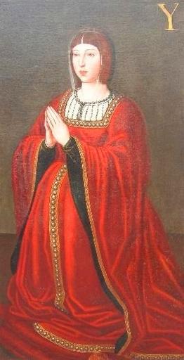 | Keywords: La reina Isabel la Católica (Casa de los Tiros de Granada).JPG Isabel de Portugal Este retrato forma parte de la llamada Colección Generalife grupo de pinturas compuesta por diversos retratos de reyes españoles de la Casa de Austria Esta colección estuvo en el palacio del Generalife hasta que este edificio pasó a ser propiedad del Estado en 1921 momento en el que pasan a formar parte de las colecciones de la Casa de los Tiros que estaba ligada al Generalife al pertenecer a los marqueses de Campotéjar alcaides del Generalife desde el reinado del emperador Carlos V El origen de esta colección de pintura está en las galerías de retratos que se fueron formando en el Generalife desde la conquista cristiana ya que el hecho de que este lugar fuera propiedad de la corona hizo llegar en momentos sucesivos retratos de los diferentes reyes hasta formar una completa galería Todos ellos son copias efectuadas en los siglos XVI y XVII de las obras que los retratistas del rey pintaban en la corte copias que se realizaban en el mismo taller del pintor de los retratos oficiales Este retrato de Isabel la Católica junto con el de Fernando el Católico ambos de medio cuerpo y vistiendo ricos trajes de corte son los más antiguos de la colección Son obras de autor anónimo de antiguo atribuidas al pintor de la reina católica Antonio del Rincón Siglo XVII Oil on canvas Size cm 150 150 Institution Casa de los Tiros Granada http //ceres mcu es/pages/Main http //ceres mcu es/pages/Main accession number DE00061 PD-old-100 other versions Portrait paintings of Isabella I of Castile Paintings in the Casa de los Tiros Granada 17th-century unidentified painters |