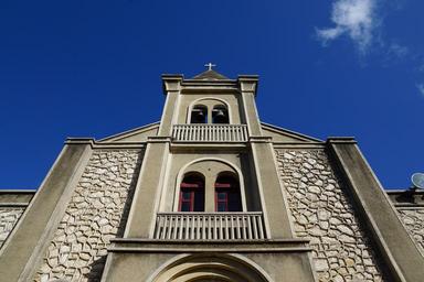 Keywords: la romana caribbean church dominican republic religion faith sky blue facade window cloud stones architecture god