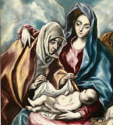 | Keywords: La Sagrada Familia con Santa Ana y San Juanito (detalle).jpg Artwork Creator El Greco La obra representa a los tres miembros de la Sagrada Familia cristiana junto a Santa Ana la madre de la Virgen María y el pequeño San Juan Bautista La Sagrada Família amb Santa Anna i Sant Joanet pintura sobre tela Biblioteca Museu Víctor Balaguer ~ 1600 Oil on canvas Size cm 69 107 Institution Museo del Prado Depositado en la Institution Biblioteca Museu Víctor Balaguer https //www museodelprado es/coleccion/obra-de-arte/la-sagrada-familia-santa-ana-y-san-juanito/086bb723-2895-4dc2-ad04-4da2750c6dca object history exhibition history El Museo del Prado en el Hermitage Sant Petersburg 2011 El Greco to Dalí Five Spanish Masters Detroit Institute of Art 2012<br/>Exposicions/Préstecs Los Grecos en el Prado Museo del Prado Madrid Va sortir i entrar amb InteArt Va sortir amb anterioritat i va ser restaurada als tallers del Prado Exposicions/Préstecs Mirar exposicions catàleg El Greco Museo del Prado 2007 accession number P00826 https //content cdnprado net/imagenes/Documentos/imgsem/08/086b/086bb723-2895-4dc2-ad04-4da2750c6dca/ec1f2284-d7aa-4946-b325-466abe95e4e5 jpg PD-old-100 La Sagrada Familia con Santa Ana y San Juanito de El Greco Museo del Prado Details of paintings by El Greco |