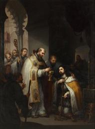 | Keywords: La última comunión de San Fernando. José Gutiérrez de la Vega.jpg La obra representa la última comunión del rey Fernando III de Castilla 1252 apodado el Santo que falleció en la ciudad de Sevilla el dÃa 30 de mayo de 1252 Siglo XIX oil on canvas Size cm 123 167 Institution Real Academia de Bellas Artes de San Fernando http //ceres mcu es/pages/Main accession number 0382 http //ceres mcu es/pages/Main PD-old-100 Paintings of Ferdinand III of Castile in the Royal Academy of Fine Arts of San Fernando Paintings by José Gutiérrez de la Vega 19th-century paintings in the Royal Academy of Fine Arts of San Fernando Ermine clothing in art |