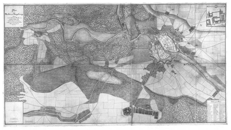 | Keywords: La Vigne Plan von Berlin mit Umgebung 1685 (1890bw).jpg Zeichnung von Rieck und Beck Städt Plankammer Berlin Kopie nach dem Plan von La Vigne Das Original von La Vigne lagerte im Hohenzollern-Museum Schloss Monbijou und wurde im Zweiten Weltkrieg zerstört Links oben steht der Titel mit dem Zuzsatz Copirt in der städtischen Plankammer nach dem im Jahre 1685 durch den Ingenieur la Vigne aufgenommenen u gezeichneten Plane Berlin im Jahre 1890 durch Rieck u Beck Links unten eine Windrose eine Maßstabsleiste über 100 Rh R und die Bemerkung Das Original zu diesem Plane befindet sich im Hohenzollern-Museum Rechts oben das Schloss aus der Vogelperspektive mit der à bertitel Das kurfürstliche Schloß zu Kölln an der Spree Rechts unten eine Legende mit 16 Ziffern Auf dem Wasser sind zahlreiche Schiffe zur Verzierung eingezeichnet Der ursprüngliche Plan wurde 1683 nach Abschluss der Befestigungsarbeiten angefertigt und stellt auch geplante Erweiterungen der Befestigung durch gepunktete Linien dar La Vigne 1685 G Schulz Stadtpläne von Berlin map date Berlin wikidata location Q64 5300 N 1 de print date 1890 Landesarchiv Berlin accession number A 2003 Size cm 245 130 Kolorierter Holzschnitt other versions <gallery> File La Vigne Plan von Berlin mit Umgebung 1685 1890 jpg Colored low res copy 1890 File La Vigne Plan von Berlin mit Umgebung 1685 1890bw jpg Greyscale med res copy 1890 File La Vigne plan of Berlin Lietzow and Tiergarten jpg Cropped black-white from Gundlach 1905 </gallery> PD-old 1685 in Berlin Old maps of Berlin 1685 |