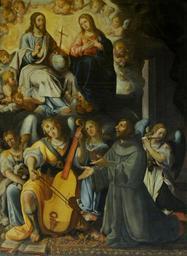 | Keywords: La visión de San Francisco de Asís (Sacristía mayor de la catedral de Sevilla).jpg Esta obra que se conserva en la Sacristía mayor de la catedral de Sevilla España fue pintada en 1620 por fray Juan Sánchez Cotán 1620 oil canvas Size cm Catedral de Santa María de la Sede de Sevilla Sacristia mayor de la catedral de Sevilla cite book Luis Martinez Montiel and Alfredo J Morales La catedral de Sevilla 1999 Scala Publishers and Aldeasa S A 857592042 object history exhibition history credit line accession number http //cubiertasdelacatedral com/visitaescolar/wp-content/uploads/2013/07/San-Francisco jpg PD-old-100 Paintings in the Sacristía mayor of Seville Cathedral Fray Juan Sánchez Cotán Uploaded with UploadWizard |