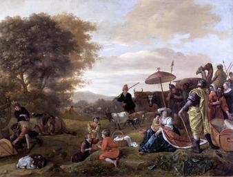 | Keywords: Laban zoekt de door Rachel gestolen Terafim door Jan Steen Museum De Lakenhal S 404.jpg ~ 1661 oil on canvas cm 109 5 144 5 Leiden Museum De Lakenhal ~ 1661 http //www lakenhal nl/nl/collectie/s-404 Creator Jan Steen other versions PD-old-100 Uploaded with UploadWizard Paintings by Jan Steen Paintings in the Museum De Lakenhal | ||||