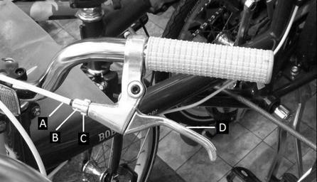 Keywords: Labeled Brake Lever Mono 2.jpg en An alpha-labeled monochrome photo of a bicycle brake lever and its barrel adjuster intended for use in the Wikibooks bicycle maintenance series own Armchair 2011-12-27 Cc-zero Bicycle brake levers
