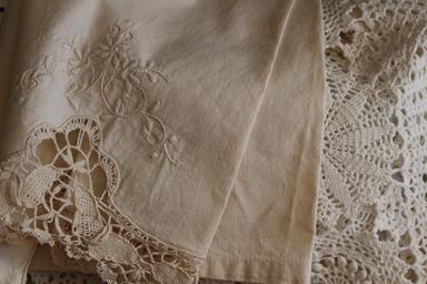 Keywords: lace linen vintage design embroidery fabric beige white decor textile