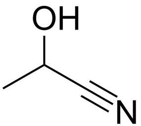 Keywords: Lactonitrile.svg Chemical structure of lactonitrile 2-hydroxypropanenitrile; acetaldehyde cyanohydrin Own 11 03 13 July 2012 UTC Ed Edgar181 Cyanohydrins