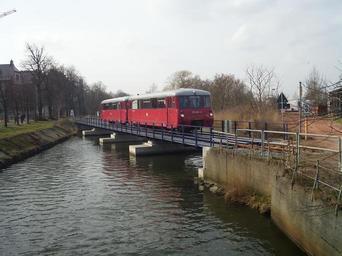 | Keywords: Ladebow busines track2.JPG Eisenbahngesellschaft Potsdam EGP on a business track in Ladebow part of Greifswald Germany on a bridge over the Ryck river The train was organized as a charter tour for railfans 2014-03-01 14 39 40 own Jan Pešula cc-zero Uploaded with UploadWizard Ladebow 172 001-0 of Eisenbahngesellschaft Potsdam 2014 in Greifswald Ryck in Greifswald DR Class VT 2 09 Railway bridges in Mecklenburg-Vorpommern | ||||