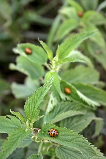 Keywords: ladybug beetle insect nature points leaf animal spotted nettle leaves fauna orange plant stinging nettle coccinellidae
