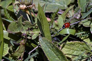 Keywords: ladybug lucky charm lucky ladybug points red black green meadow insect nature animal greeting small grass stalk leaves