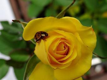 Keywords: ladybug lucky charm rose yellow macro
