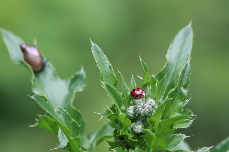Keywords: ladybug thistle green grass nature summer