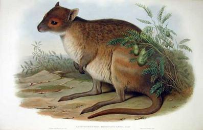 | Keywords: Lag cons.jpg Lagorchestes conspicillatus Mammals of Australia Vol II Plate 58 <br> http //www museum vic gov au/bioinformatics/mammals/images/Lag_cons htm 1853 creator John Gould PD-old-100-1923 Lagorchestes conspicillatus The Mammals of Australia John Gould |