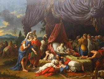 | Keywords: Lagrenee, Louis Jean - La mort de la femme de Darius - 1785.JPG Artwork creator Louis Jean Francois Lagrenée La mort de la femme de Darius Der Tod der Frau des Darius III - Alexander und Hephaistion am Sterbebett der Stateira 1785 Oil on canvas cm 327 424 Institution Louvre Aile Sully - 2<sup>ème</sup> étage - Section 53 Plutarch XXXIII 30<sup>http //www kunst-fuer-alle de/deutsch/kunst/kuenstler/poster/jean-jacques-lagrenee/18931/1/126031/la-mort-de-la-femme-de-darius/index htm</sup> http //worldvisitguide com/oeuvre/photo_ME0000029036 html Other versions colors adjusted with IrfanView 4 20 removed lower right inscription PD-old-100 La mort de la femme de Darius Lagrenée Louvre INV20142 Images created or edited with IrfanView Images from kunst-fuer-alle de Uploads by Mattes from external sources |