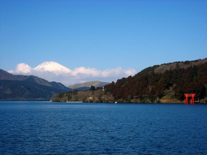 Keywords: lake ashi mt fuji torii red kanagawa japan