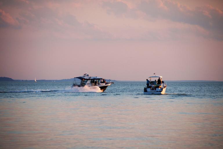 Keywords: lake balaton evening sunset ship rowboat motorboat