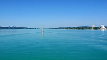 Keywords: lake balaton north at 5 mph sailing boat smooth water surface