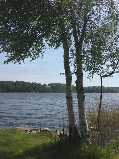 Keywords: lake birch trees summer birch nature tree water sky blue sweden himmel grass green