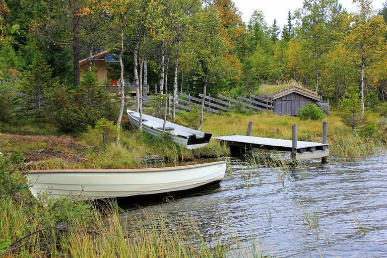 Keywords: norway lake water boats dock pier house home forest trees fall autumn nature outside country countryside boat