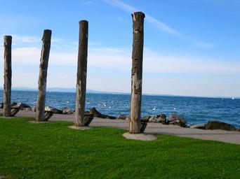 Keywords: lake constance art tree trunks sculpture switzerland water