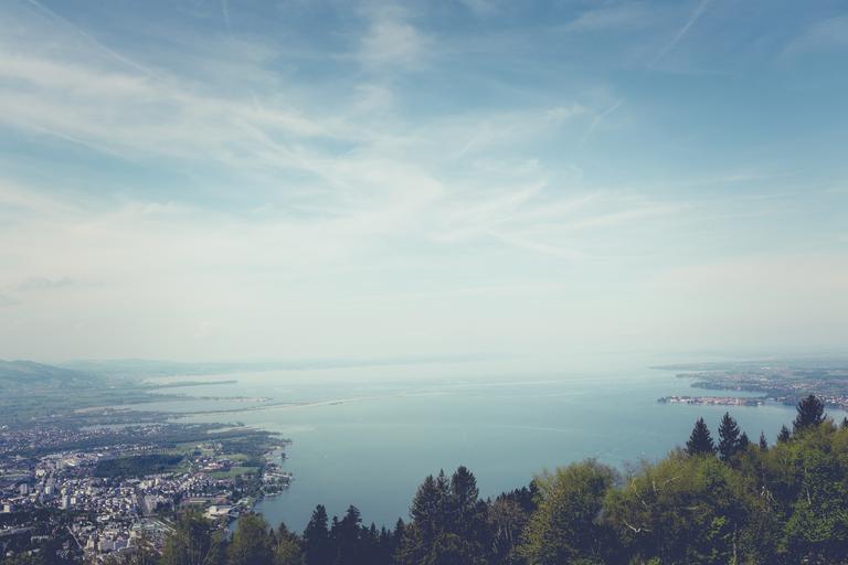 Keywords: lake constance pledges mountains bavaria trees distant view germany lake places of interest firs view alpine clouds