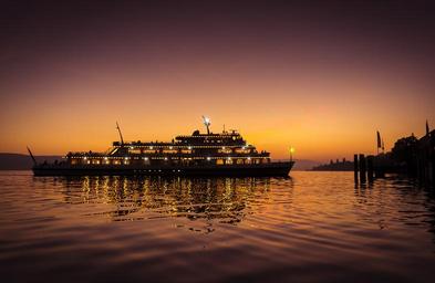 Keywords: lake constance ship sunset violet light uberlingen water back light abendstimmung lake port cruise rest boot