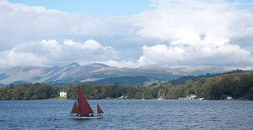 Keywords: lake district yacht sky landscape boat sail lake red canvas