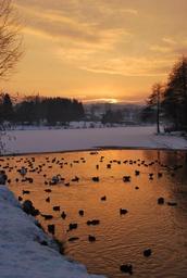 Keywords: lake ducks birds sunset beautiful orange snow winter water nature wildlife animal wild outdoor