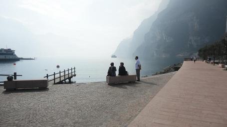 Keywords: lake fog promenade water morning italy garda