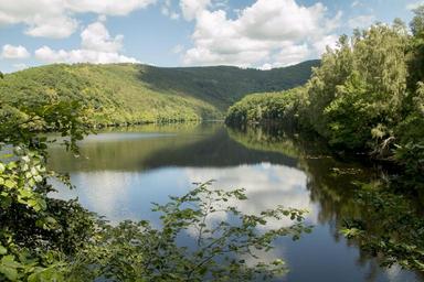 Keywords: lake forest eifel germany national park hiking trail away trees summer nature spring green hill idyllic haunting water fairytale mystical