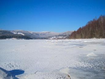 Keywords: lake frozen mountains sky forest trees water winter snow ice nature outside country countryside beautiful peaceful