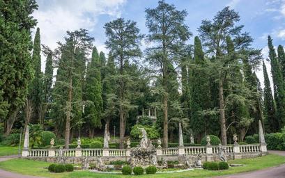 Keywords: lake garda sirmione villa cortine palace italy travel tourism europe statues garden pond nature sky clouds vacation summer outdoor holiday resort summer vacation leisure luxury