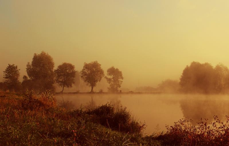 Keywords: lake morning nature the fog pond water climate landscape poland sunrise autumn view