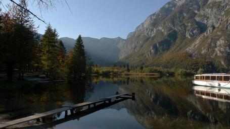 Keywords: bohinj lake mountain european alps green julian alps cloud autumn slovenia wilderness area standing water mountain range forest reflection national landmark blue