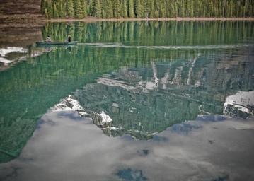 Keywords: lake mountain scene forest trees landscape nature mountain scene sky water blue scenery reflection peak scenic green tranquil outdoor snow cloud row boat tourists summer canada