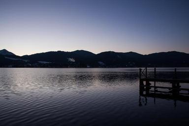 Keywords: lake mountains panorama bank sky water blue rest dusk landscape nature winter mirroring web landing stage