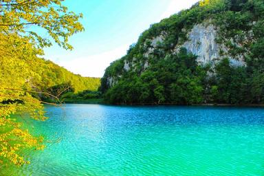 Keywords: lake paradise croatia plitvice water landscape blue nature sky summer travel scenic natural colorful reflection coast waterfall