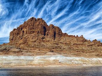 Keywords: lake powell arizona mountains sky clouds lake water shoreline nature outside sandstone destinations landmark