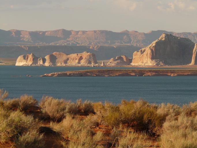 Keywords: lake powell reservoir lake water landscape mountain arizona utah usa wide beautiful rest balance peace