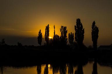 Keywords: lake reflection sunset tree silhouette evening landscape sundown tranquil