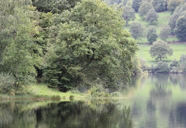 Keywords: lake seascape landscape mirroring atmosphere rest relaxation idyll holiday holidays travel hike trees tree nature eifel rursee lichtspiel peaceful waters water silent national park reflection mood